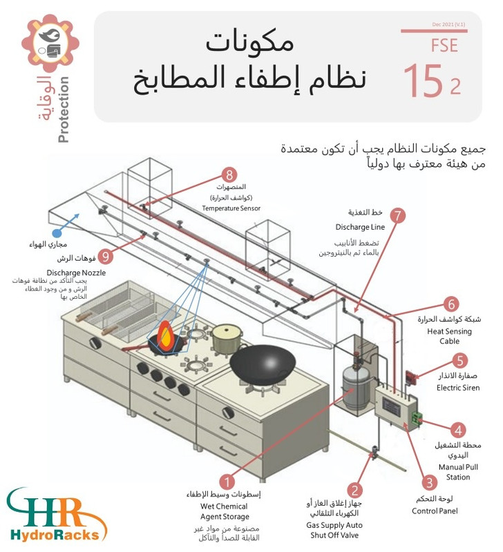 آلية عمل نظام الاطفاء في المطابخ(الهود):